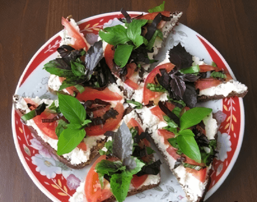 A sandwich with cheese and tomatoes is a refined yet simple option for a light European snack. Its origin can be linked to the classic Italian salad 'Caprese,' where the main ingredients are tomatoes, mozzarella, and basil. This sandwich has a soft creamy taste thanks to low-fat cheese, while fresh tomatoes add juiciness and a slight tang. Basil enhances the aromas, giving the dish a Mediterranean note. It's an excellent choice for those watching their diet: whole grain bread makes this snack healthier. It can be served as a light breakfast or appetizer, and grain bread allows for adaptation to individual taste preferences.