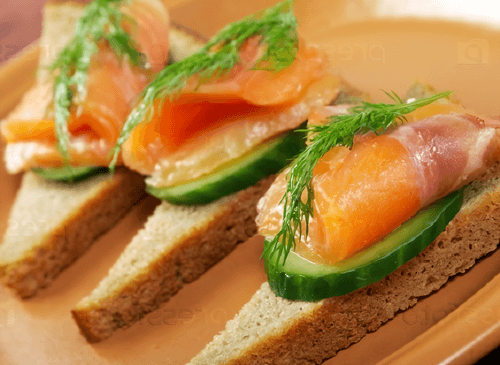 A sandwich with salmon and cucumber is a classic of European cuisine that combines the tenderness of lightly salted salmon with the crunchy freshness of cucumber. The simplicity of this dish makes it ideal for a quick snack or light breakfast. Historically, such sandwiches were popular in Scandinavia, where fish is an important part of the national cuisine. Salmon, rich in Omega-3 fatty acids, helps strengthen immunity and improve metabolism, while whole grain bread adds a pleasant texture and nourishes the body with beneficial substances. The crunchy cucumber refreshes the taste, giving the sandwich a special juiciness. This sandwich is easy to prepare and makes a great addition to morning coffee or an evening buffet.