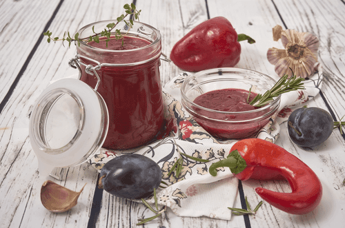 Plum homemade adjika is a bright representative of Georgian cuisine, combining a rich sweet-spicy taste and a piquant aroma. This sauce originated as a variation of traditional adjika but with the addition of juicy plums that give it a special sweet-sour note. Thanks to the use of tomatoes, garlic, and hot peppers, adjika has a pronounced flavor and a pleasant spicy nuance. It pairs perfectly with meat, poultry, fish, and vegetable dishes, enriching them with its rich bouquet. During preparation, the ingredients are chopped and cooked down to achieve an ideal blend of flavors. Plum adjika not only makes the meal rich but also highlights Georgian gastronomic traditions.