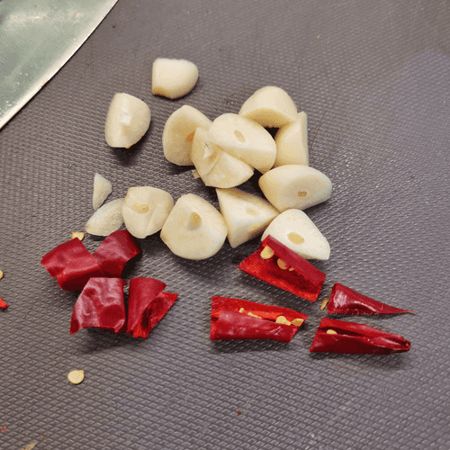 Chop garlic and hot pepper.
