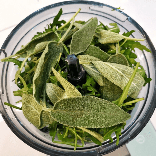 Put arugula and sage in the blender.