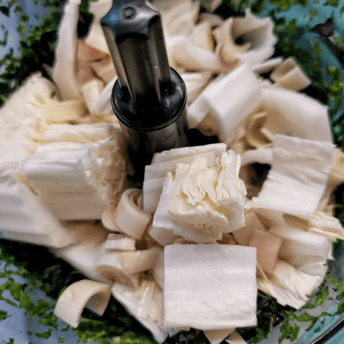 Chop lemongrass and Beijing cabbage before adding to the blender.