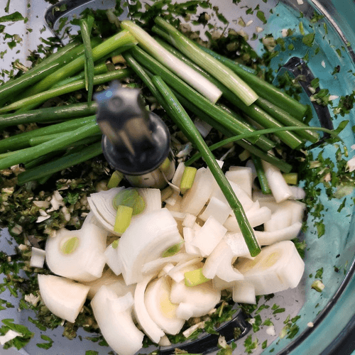 Shallots and green onions should also be chopped first.