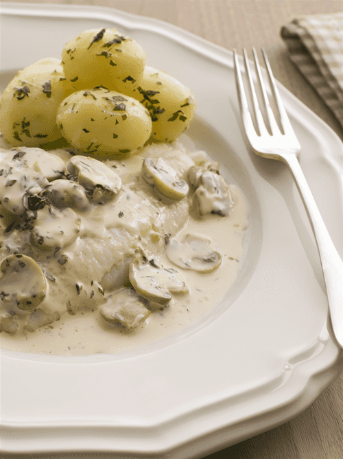 Lemon sauce with mushrooms and capers