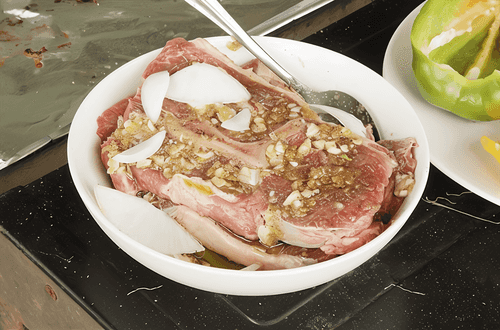 Meat in lemon marinade is a refined dish that harmoniously combines the freshness of citrus and the rich flavor of meat. Thanks to lemon juice and aromatic spices, the meat becomes tender, juicy, and acquires a tangy zest. This marinating method comes from traditional cuisines where meat is prepared for grilling or roasting, infusing it with aromas. Onion adds sweetness and tenderness, while nutmeg adds a spicy depth of flavor. The dish is perfect for grilling or baking, and its aroma awakens the appetite. It is served with vegetables, greens, or light side dishes, creating a vibrant palette of flavors. Ideal for cozy family dinners and festive gatherings.