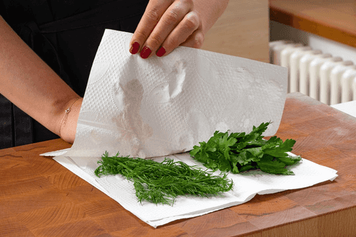 Wash and dry the parsley and dill.