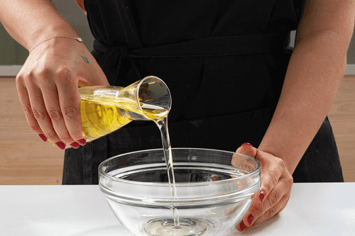 Pour vegetable oil into a small container.