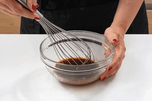 Mix the dressing well with a whisk.