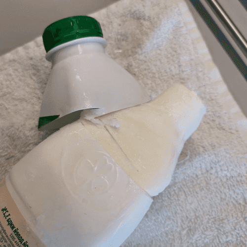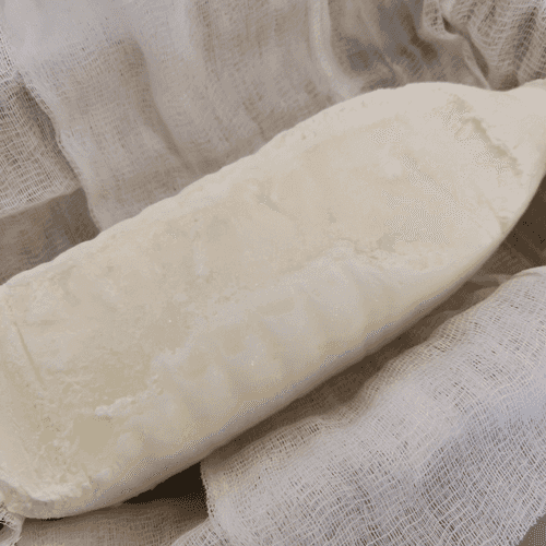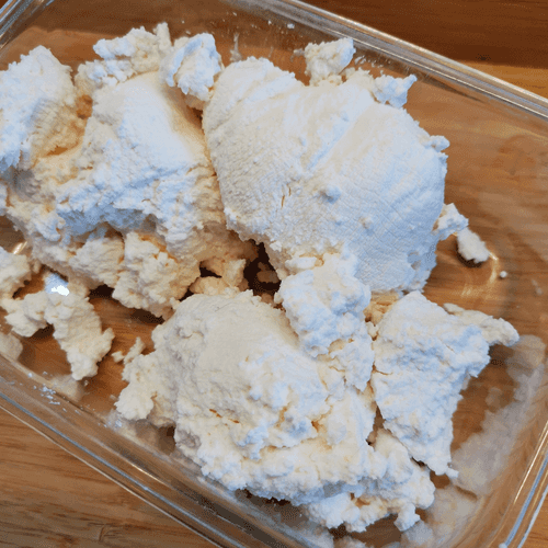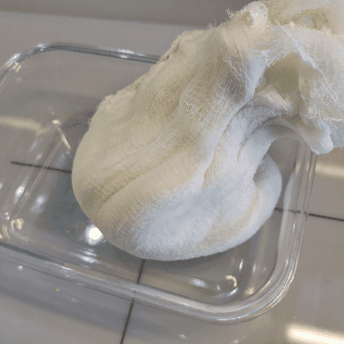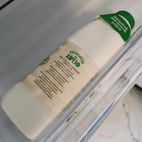 After 7-8 hours, when the kefir is fully thawed, squeeze out the excess moisture.