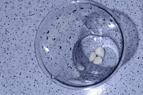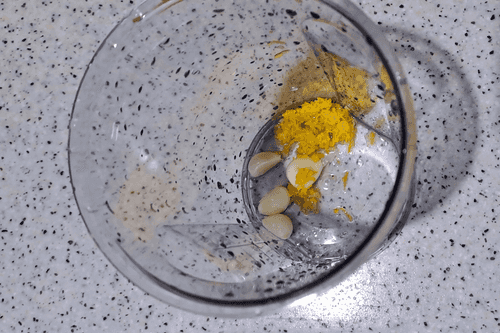 Peel the garlic. Place it in the immersion blender bowl.