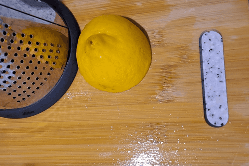 Cut the lemon in half. Grate the lemon zest on a fine grater.