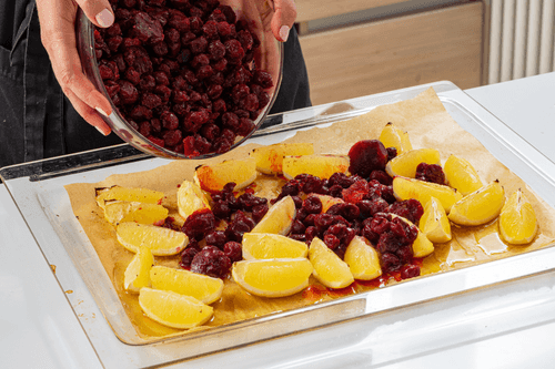 Spread the cherries on a baking sheet and bake for another 20 minutes. The lemons should dry out a bit, and the berries should caramelize.