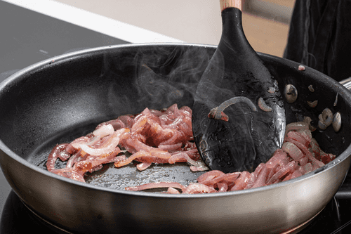 Sauté the onion in olive oil with a pinch of salt until it caramelizes (do not let it burn!). This will take about 10 minutes.