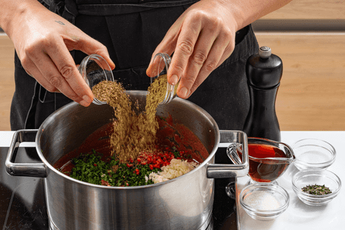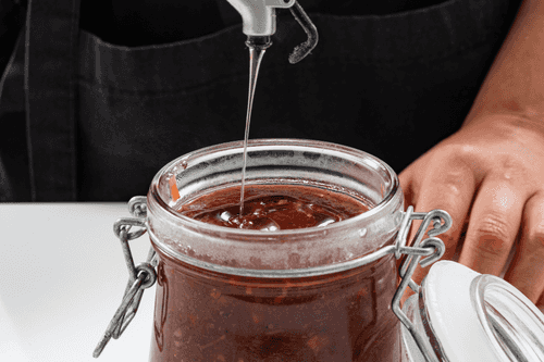 Pour the prepared sauce into hot sterilized jars.