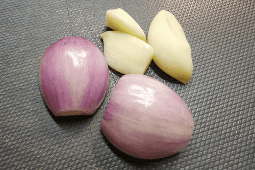 Peel the onion and garlic.