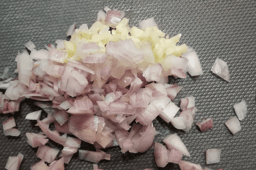 Add onion and garlic. Sauté while stirring for about 3 minutes.