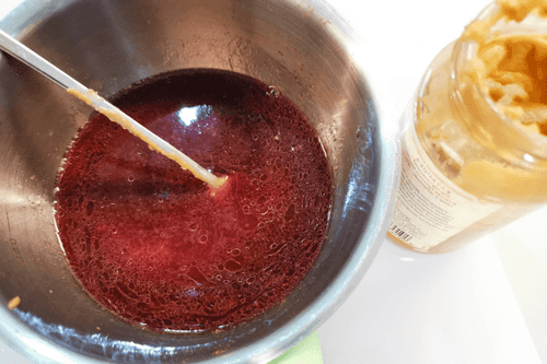 Pour the red wine.