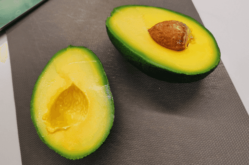 Cut the avocado in half. Carefully remove the pit.