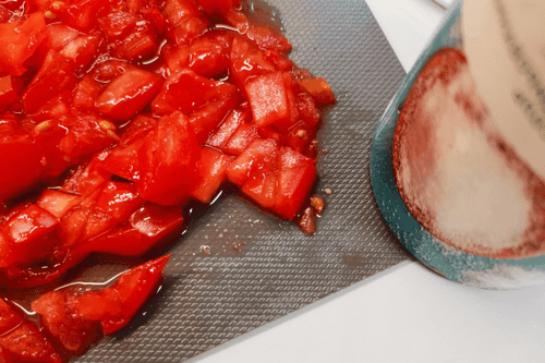Chop the tomato finely and salt it.
