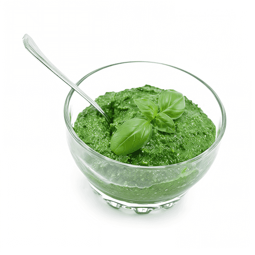 Spinach pesto is an original variation of the classic Italian sauce that originates from the Liguria regions. In this recipe, the delicate taste of spinach harmoniously combines with the aroma of basil and parsley, creating a fresh and rich bouquet. Pine nuts add a nutty depth to the sauce, while mushroom sauce brings spiciness and uniqueness. Garlic adds a slight sharpness, and salt emphasizes all flavor nuances. This pesto is perfect for pasta, spreading on bread, dressing salads, and even as a sauce for meat or fish.