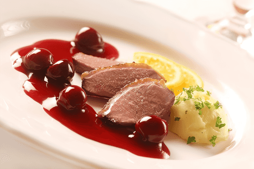 Cherry sauce with brandy and pecans for duck is an elegant addition to traditional French dishes. Its origin is linked to the refined gastronomic traditions of France, where fruits and alcohol create exquisite flavor combinations. This sauce has a rich sweet-tart cherry flavor complemented by the depth of brandy and the crunchy texture of pecans. Orange zest adds a fresh citrus note, enriching the taste even further. It pairs perfectly with roasted duck or ham, enhancing their aroma and adding a light caramel sweetness. The sauce can be used not only with meat but also as a sophisticated dip for cheese or even in desserts, creating unusual combinations. This recipe reflects the balance between richness and refinement in French cuisine.