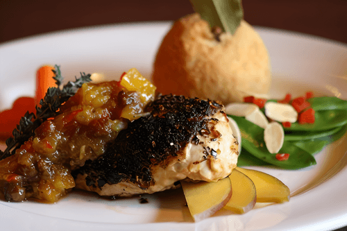 Mix orange juice and starch, then gradually add to the onion mixture. Heat while stirring constantly until the sauce thickens.