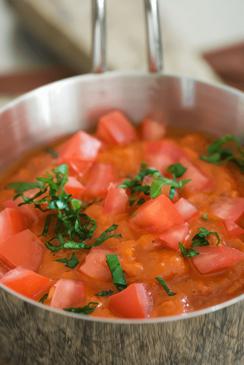 Pass the tomatoes and garlic through a meat grinder.