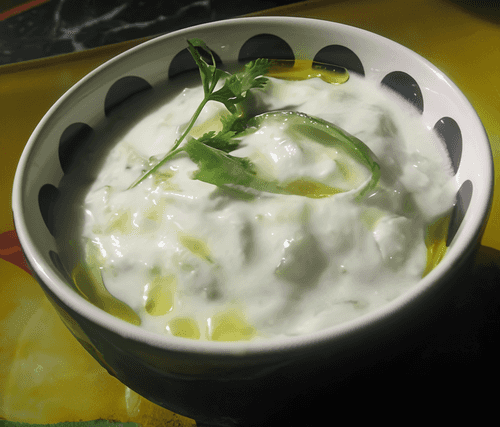 Add yogurt, a spoon of oil, a little vinegar, pepper, and salt.