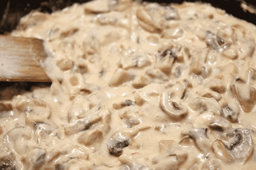 Lower the temperature and gradually add sour cream and cream while stirring. Simmer for 2 minutes.