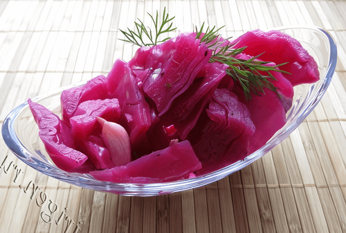Pickled cabbage with beetroot is a bright and aromatic dish of Russian cuisine that embodies the richness of traditional flavors. The combination of crunchy cabbage, sweet beetroot, and spicy garlic creates a rich, slightly tangy yet refreshing taste. Historically, cabbage was pickled for long-term storage, and the addition of beetroot gives it a rich ruby hue and a hint of sweetness. This appetizer pairs excellently with meat dishes, potatoes or can be enjoyed as a standalone cold snack. The secret to its flavor lies in the right balance of salt, sugar, and vinegar that enhances the natural juiciness of the vegetables. After just a few days of pickling, the cabbage is ready to eat and its flavor only improves over time. It is one of those dishes that does not lose its popularity over the years.