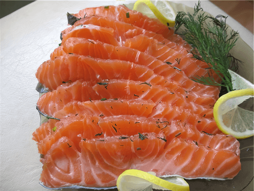We rub the fish fillet with salt and sugar. Sprinkle with lemon zest and dill. Drizzle with cognac. Cover the fillet with plastic wrap, slightly tearing it to allow air in.