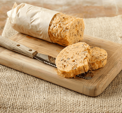 To serve, place a slice of butter on the meat or fish. The butter will slowly melt on the surface of the product and give it an amazing flavor.