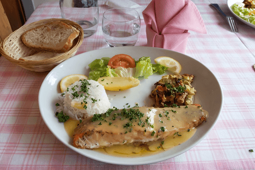 Serve with vegetables and fish.