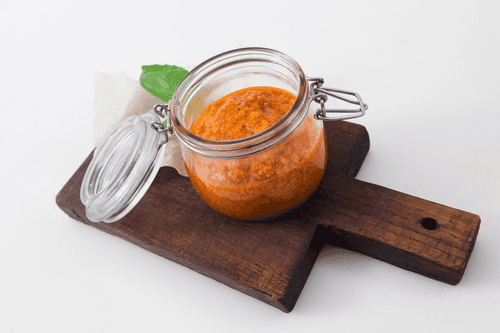 Sun-dried tomato pesto is a refined Italian sauce filled with the rich, deep flavors of the Mediterranean. Its intense aroma of sun-dried tomatoes, creamy texture of hard cheese, and nutty hint of pine nuts create a harmonious ensemble. Originally, classic pesto was made with basil, but this version offers a more intense and sweet-spicy note thanks to the sun-dried tomatoes. The sauce pairs perfectly with pasta, meat, fish, and even as a spread on bread. Its preparation is incredibly simple, and storing it in the fridge allows you to enjoy this vibrant flavor for weeks. Sun-dried tomato pesto is a gastronomic journey to Italy in every spoon!