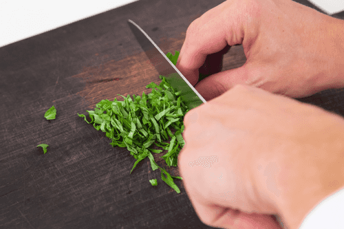 Grate the cheese on a fine grater and chop the basil finely.