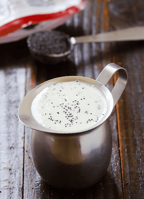 Poppy seed dressing for salad is a harmonious blend of the creaminess of Greek yogurt, the sweetness of honey, and the spiciness of Dijon mustard. This dressing comes from American cuisine, where it is often used to add freshness to green salads. White wine vinegar adds a light tanginess, while poppy seeds provide a textural twist, making the dressing not only tasty but also aesthetically pleasing. With garlic and black pepper, it gains a mild spiciness that perfectly complements vegetable or fruit salads. The thickness of the dressing can be adjusted by adding water and it can be used not only for salads but also as a dip for vegetables or roasted meat. It is a versatile component that transforms even the simplest dishes into culinary delights.