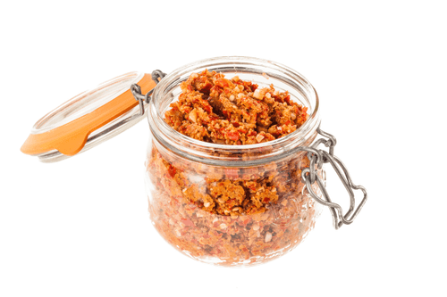 Nut ajika is an exquisite blend of spiciness, aroma, and rich flavor. This traditional Georgian sauce, infused with chili peppers, garlic, and spices, has its roots in the culinary traditions of the Caucasus. The addition of walnuts gives it a velvety texture and a slight nutty bitterness, making it truly special. Nut ajika pairs wonderfully with meat dishes, vegetables, and even flatbreads, awakening the appetite with its piquant character. Its rich flavor unfolds over time, becoming deeper and more expressive. It is not just a sauce — it is a true gastronomic emotion filled with the warmth of Georgian cuisine and the spirit of hospitality.