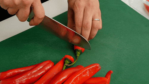 Cut the stems off the peppers, leave the seeds, they will add spiciness.