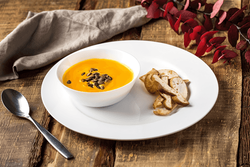 Boil the pumpkin, onion, carrot, and potato until ready.