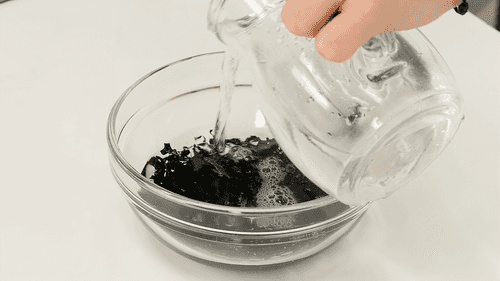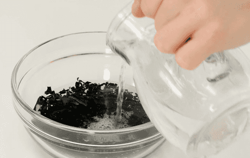 Soak the dried seaweed in cold water for 10-15 minutes. Then cut them into small rectangles or thin strips.