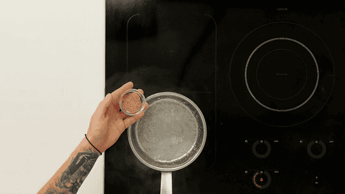 Bring water to a boil, add dashi powder, stir, and leave on medium heat.