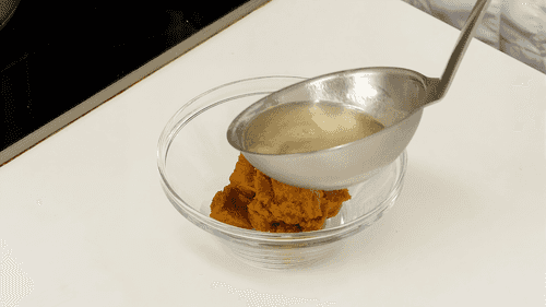 Mix the miso paste with a small amount of hot broth from the pot until smooth and lump-free.