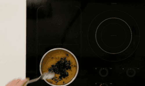 Add it and the seaweed to the pot, reduce the heat to low, the soup should not boil. Heat for 5 minutes.