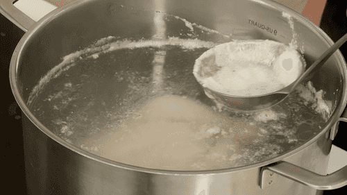 Remove the chicken from the broth and strain the broth through a sieve.