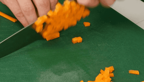 Cut the carrot into medium cubes.
