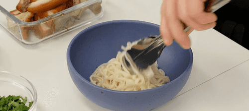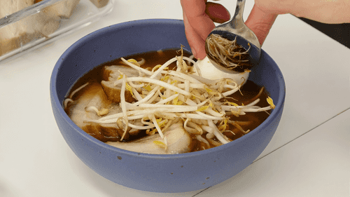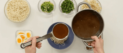 Assemble the soup directly in the bowl: Add noodles and a few slices of meat.
