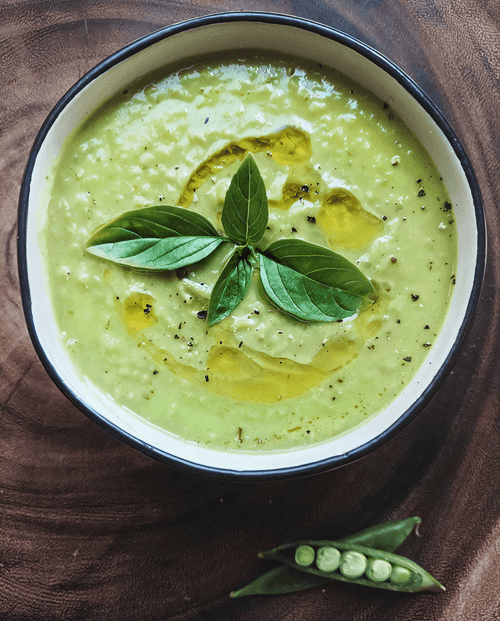 Green pea and basil soup with coconut milk