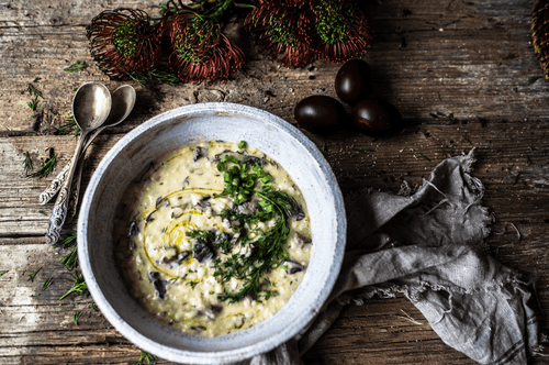Pour half a ladle of broth into the egg mixture and mix well. Then gradually pour this mixture into the soup while stirring vigorously. Drizzle with olive oil, cover with a lid, and let steep for 5-7 minutes.