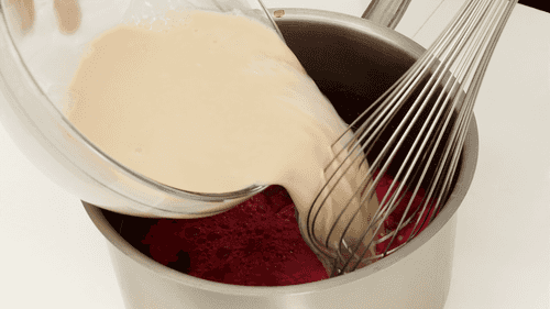 Mix the beet broth first with sour cream, then with beet broth. Put it in the refrigerator.