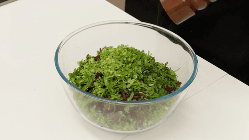 Mix all the vegetables and greens together, add salt, black pepper, and coriander.